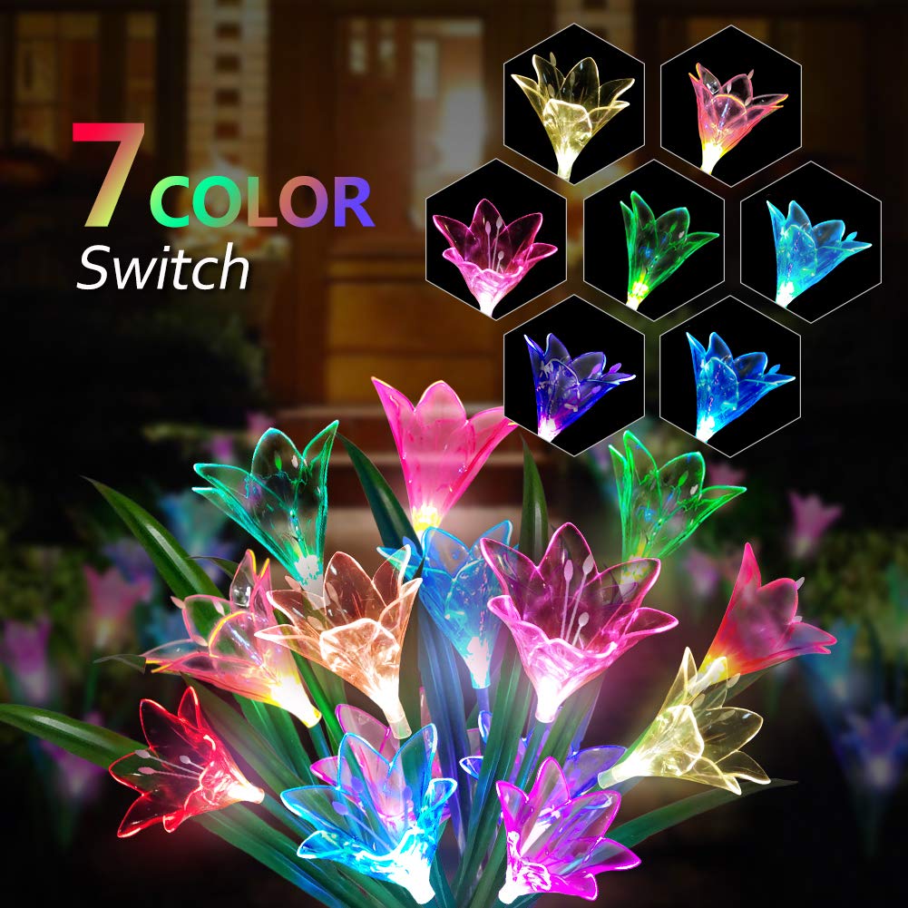 Wunderschöne Kunstblumen-Gartenleuchten. Die Blütenblätter sind wunderschön gestaltet, um echte Lilien zu imitieren. Das Material der Blume ist Kunststoff, der die Qualität und das Aussehen einer echten Lilie verbessert und die Nachteile von Verblassen und Minderwertigkeit traditioneller Stoffe vermeidet....
